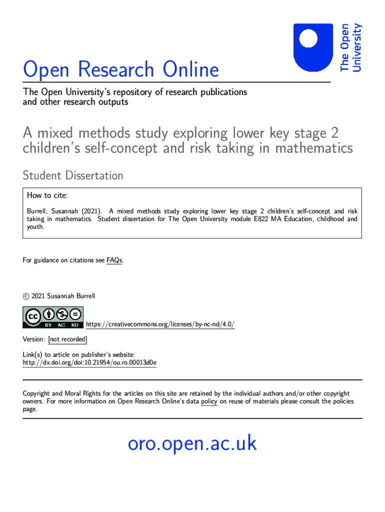 Open Research Online The Open Universities repository of research publications and other research outputs mixed methods study exploring lower key stage 2 children's self concept and risk taking in