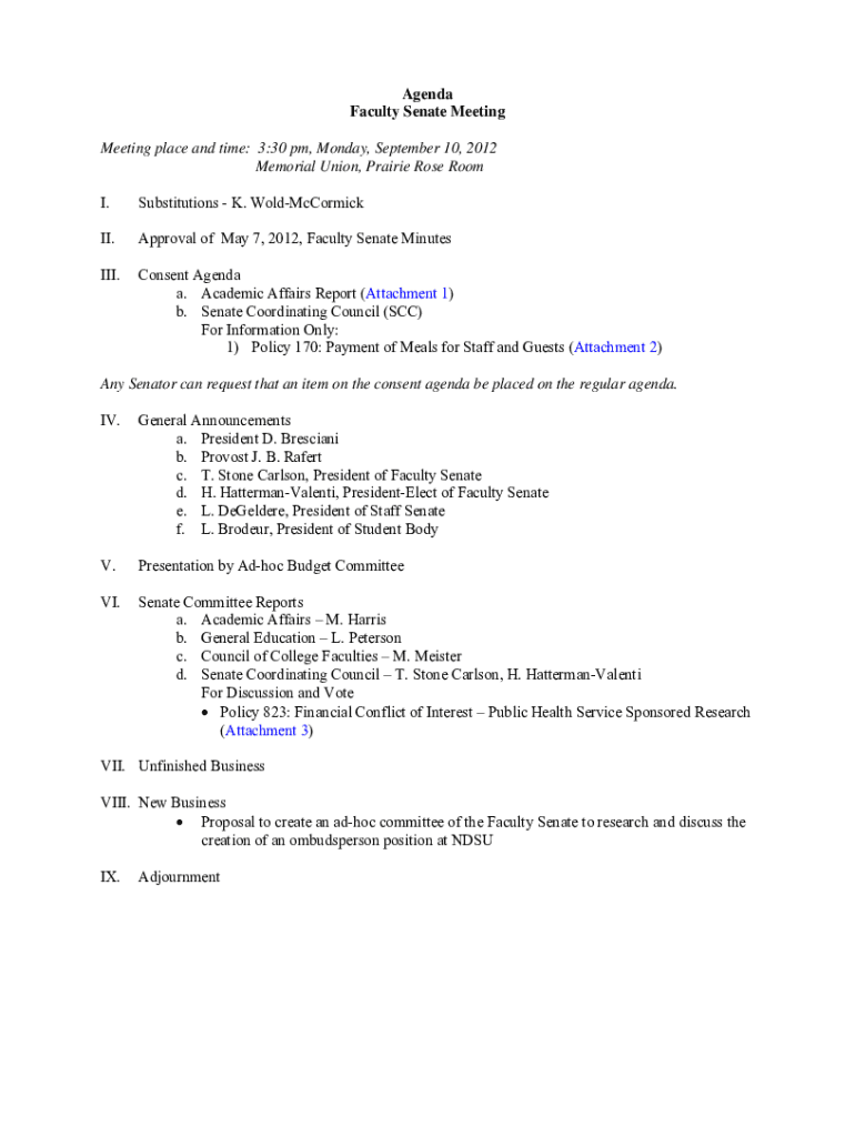 Get the free NDSU Faculty Senate - North Dakota State University