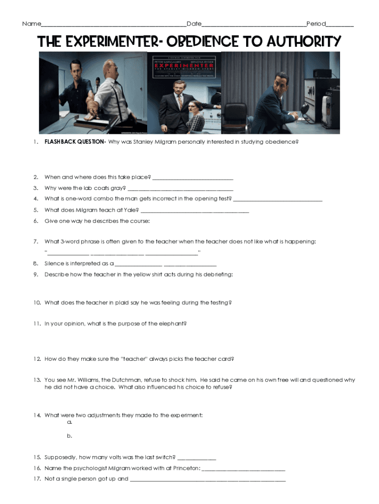 Get the free Name Date Period The Experimenter- Obedience to Authority