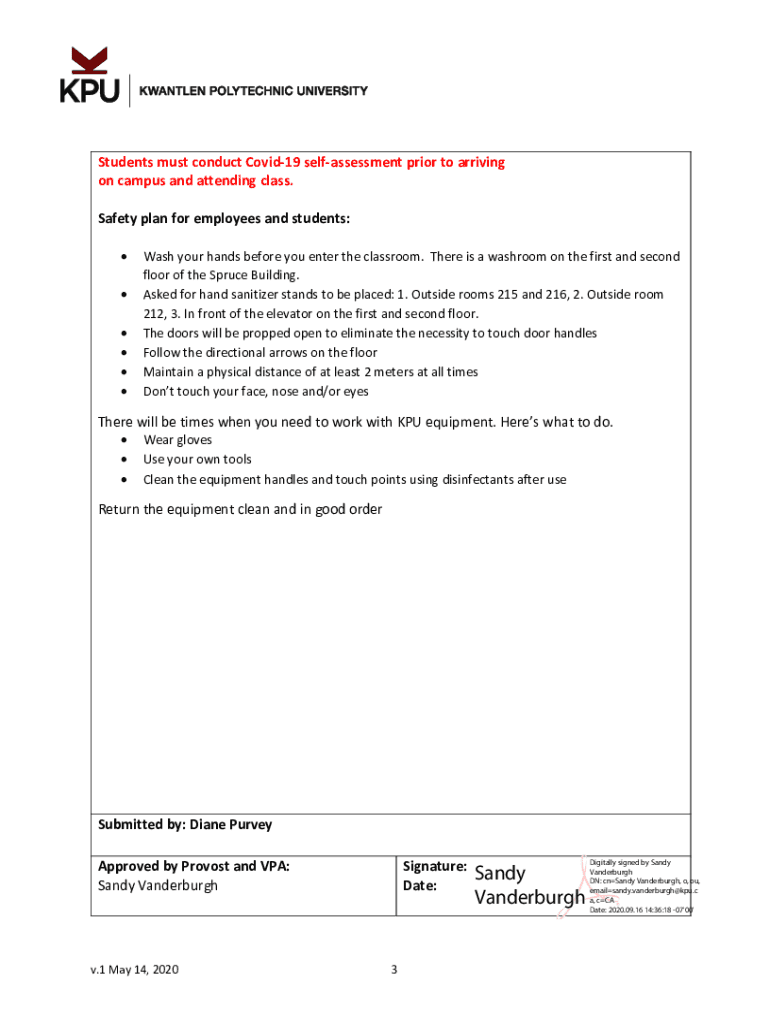 Program/Course Health & Safety Form Date: 8/8/2020Campus: SurreyFaculty: Arthrogram: Fine Antedate of first group of students on campus: 9/11/2020Date of first group of students to leave campus: 12/11/2020