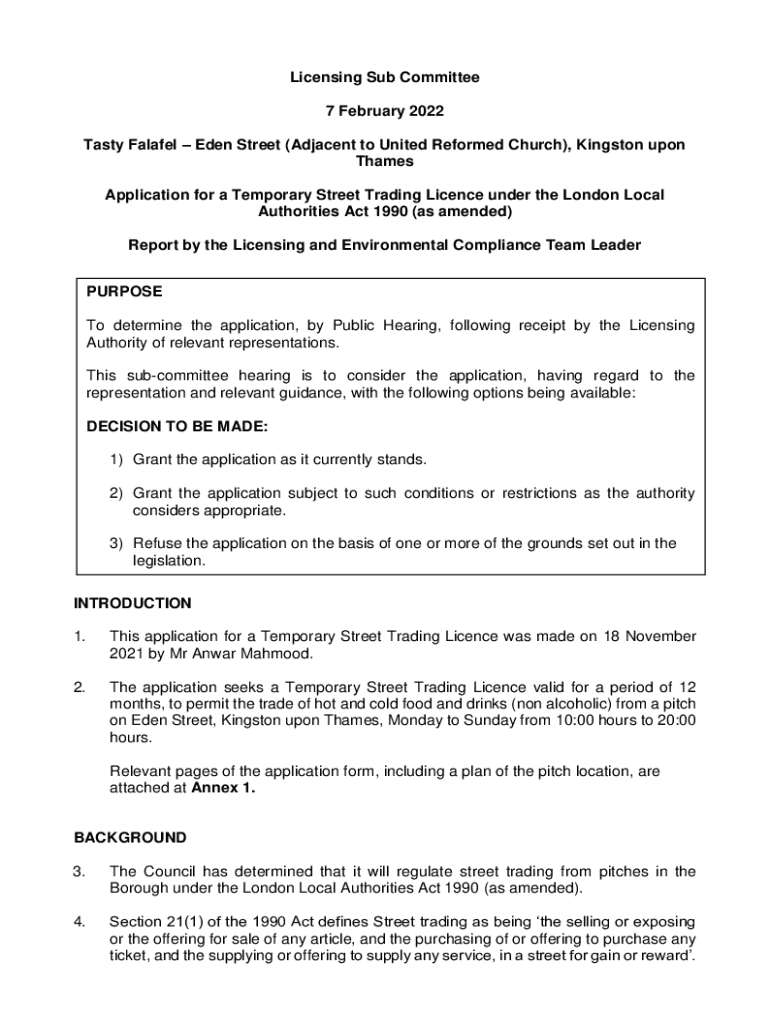 Get the free Application for a Temporary Street Trading Licence - Tasty Falafel ... - moderngov k...
