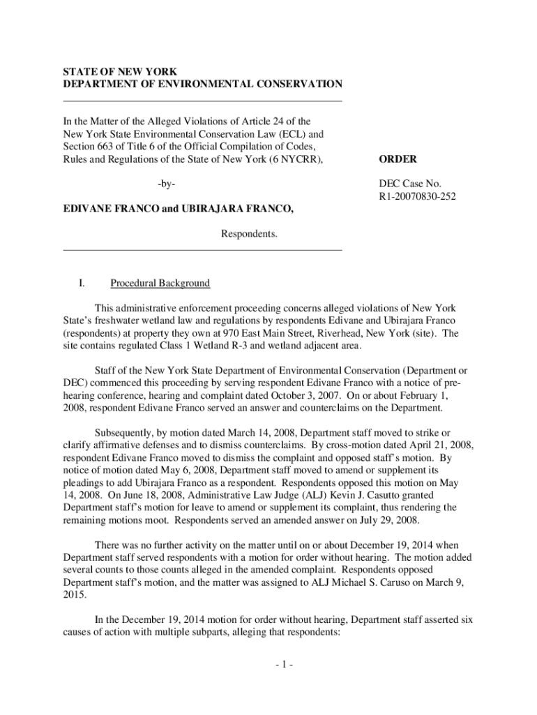 STATE OF NEW YORK DEPARTMENT OF ENVIRONMENTAL CONSERVATION ___ In the Matter of the Alleged Violations of Article 24 of the New York State Environmental Conservation Law (ECL) and Section 663 of Title