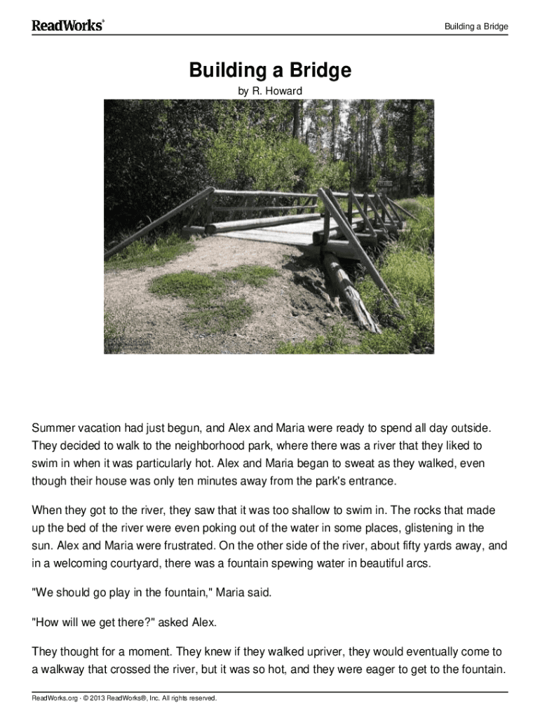 Get the free Building a Bridge.docx - Building a Bridge Summer vacation had just ...