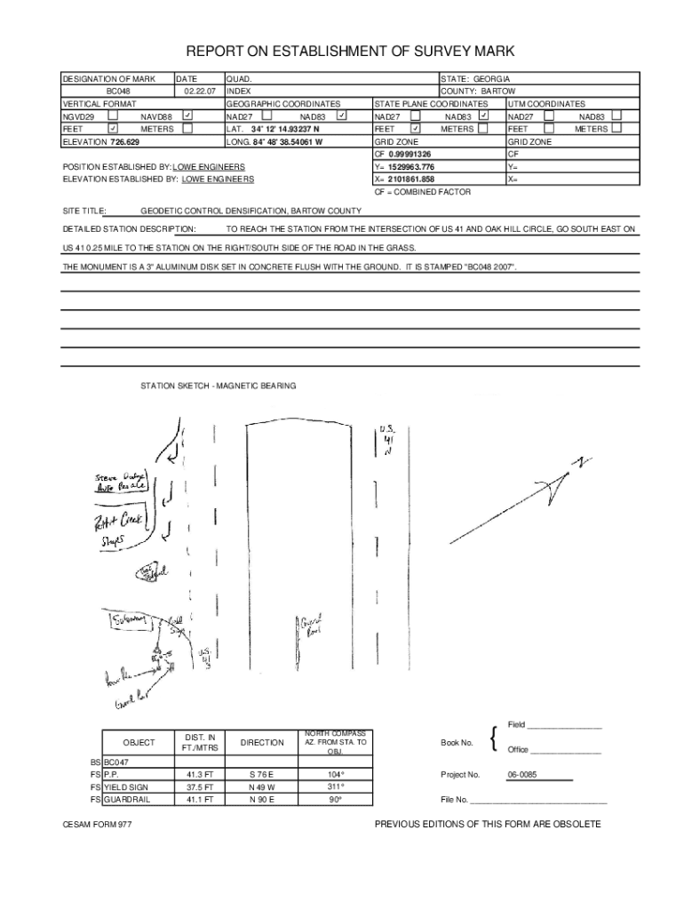 02.22.07VERTICAL FORMATTED.STATE: GEORGIAINDEXCOUNTY: BARTOWGEOGRAPHIC COORDINATESSTATE PLANE COORDINATES COORDINATESNGVD29NAVD88NAD27NAD27NAD27FEETMETERSLAT.ELEVATION