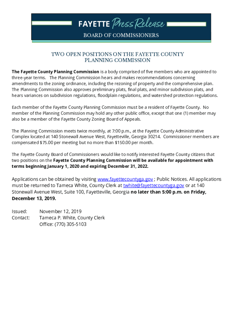 Get the free fayettecountyga.govnewsarchives22SepTWO OPEN POSITIONS ON THE FAYETTE COUNTY PLANNIN...