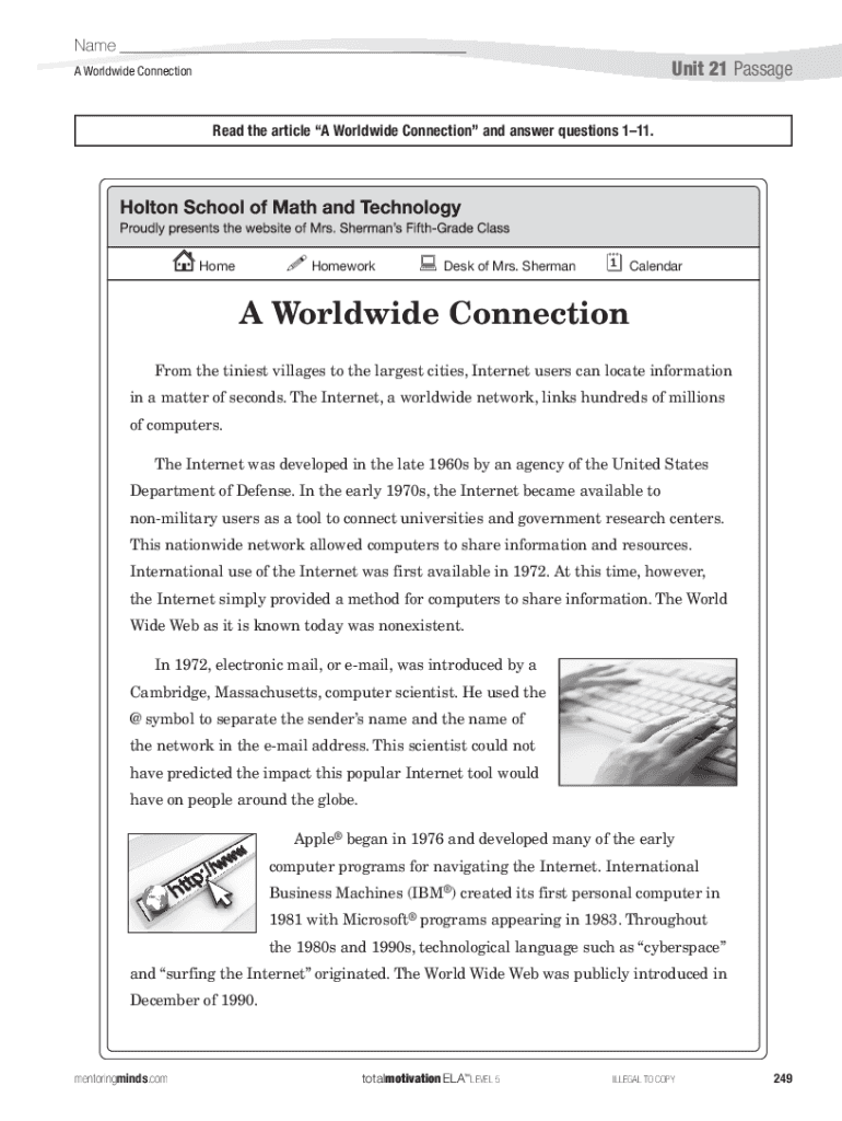 Name ___Unit 21 Passage Worldwide Connectionless the article A Worldwide Connection and answer questions 111. HomeworkHome Desk of Mrs. Sherman Calendar Worldwide Connection From the tiniest villages