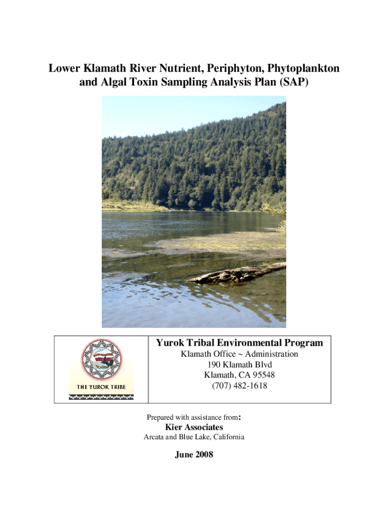 Lower Namath River Nutrient, Periphyton, Phytoplankton and Algal Toxin Sampling Analysis Plan (SAP)Euro Tribal Environmental Program Namath Office Administration 190 Namath Blvd Namath, CA 95548 (707)