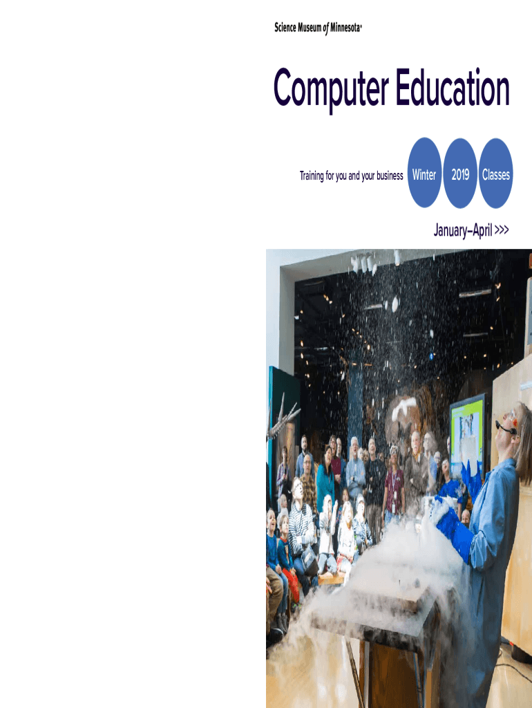NONPROFIT ORG. US POSTAGE PAID SCIENCE MUSEUM OF MINNESOTAComputer Education Center 120 West Kellogg Boulevard Saint Paul, Minnesota 55102Computer Education Training for you and your businessWinter2019ClassesJanuaryApril