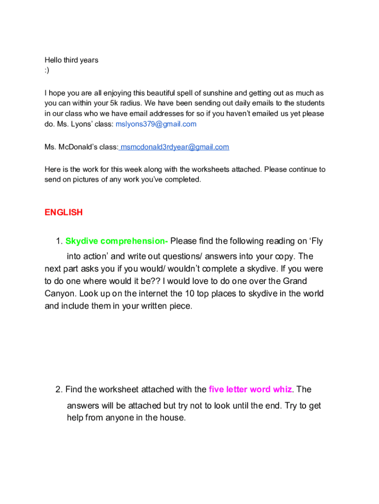 Hello third years :) I hope you are all enjoying this beautiful spell of sunshine and getting out as much as you can within your 5k radius. We have been sending out daily emails to the students in