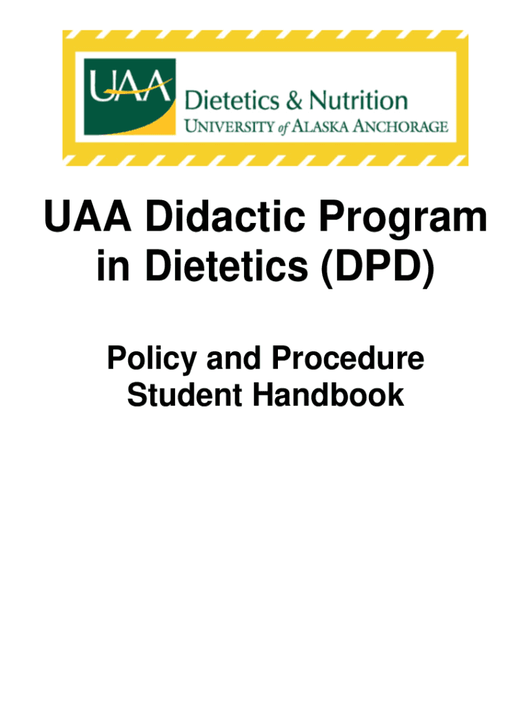 UAA Didactic Program in Dietetics (DPD) Policy and Procedure Student Handbooks handbook is provided for informational purposes only and should not be construed as the basis of a contract between a
