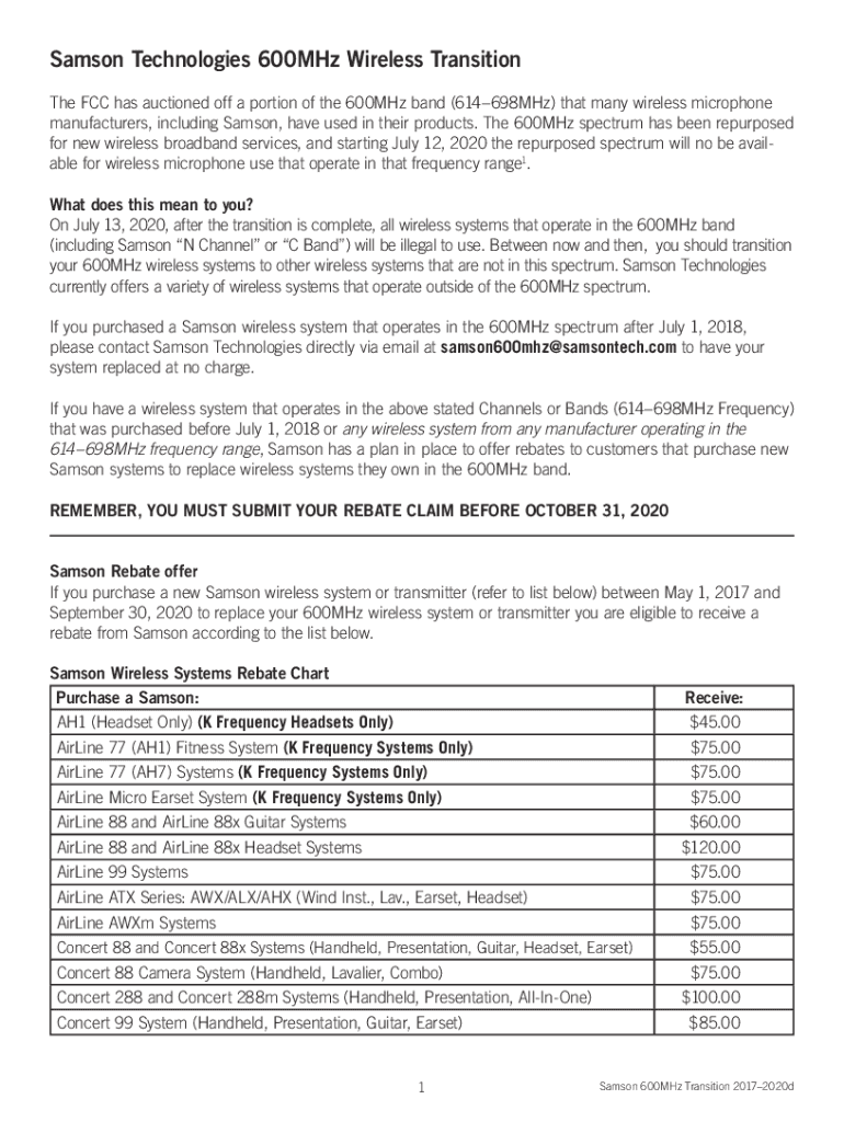 Fill out your blogsamsoncoblog600-mhz-wireless-microphone600mhz wireless microphone rebate online with pdfFiller!