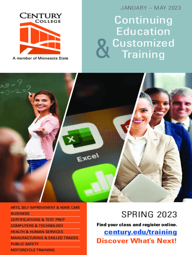 JANUARY MAY 2023A member of Minnesota State ARTS, SELF IMPROVEMENT & HOME CARE BUSINESS CERTIFICATIONS & TEST PREP&Continuing Education Customized TrainingSPRING 2023COMPUTERS & Technologizing your
