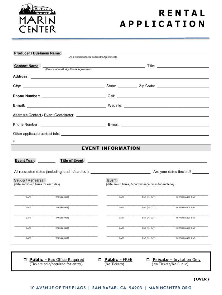 RENTAL APPLICATION Producer / Business Name: (As it should appear on Rental Agreement)Contact Name:Title: (Person who will sign Rental Agreement)Address: City:State:Zip Code:Phone Number:Cell:Email:Website:Alternate