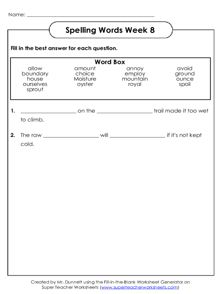 Name: ___Spelling Words Week 8