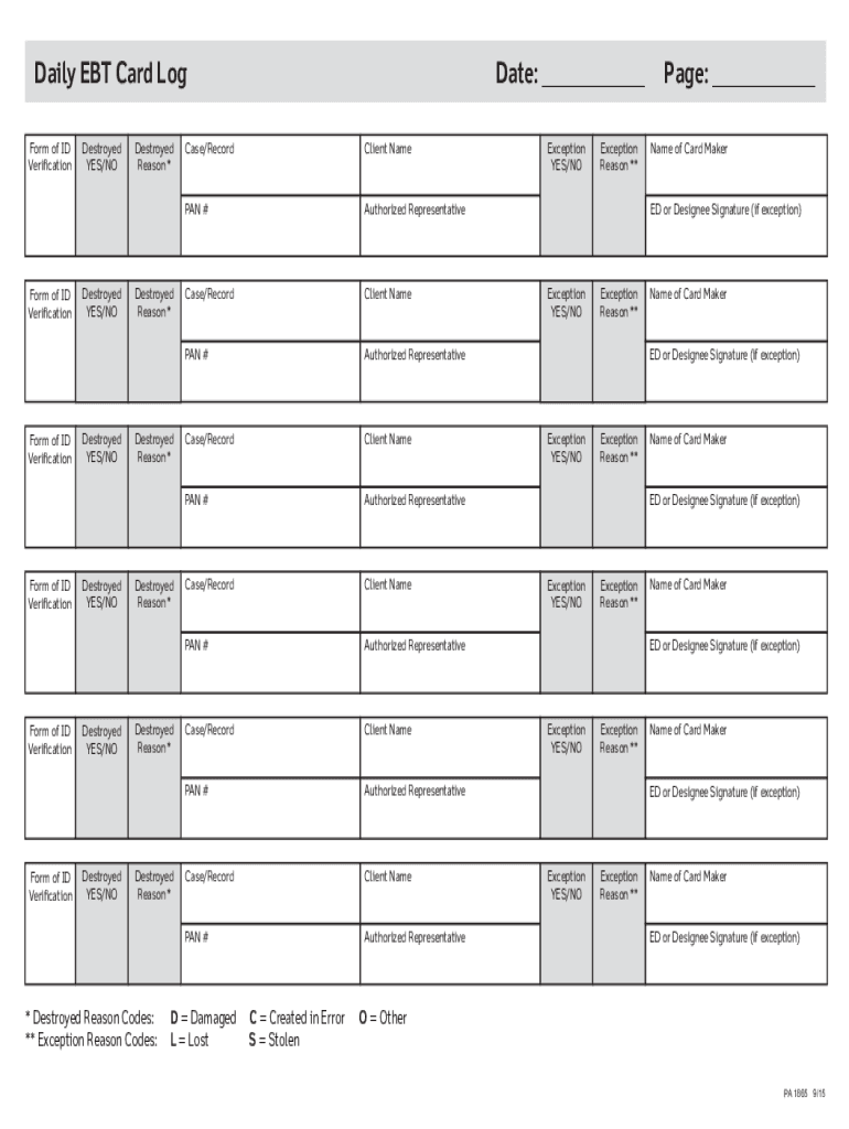 Get the free Form H1173, EBT Card Issuance Log - Texas - services dpw state pa