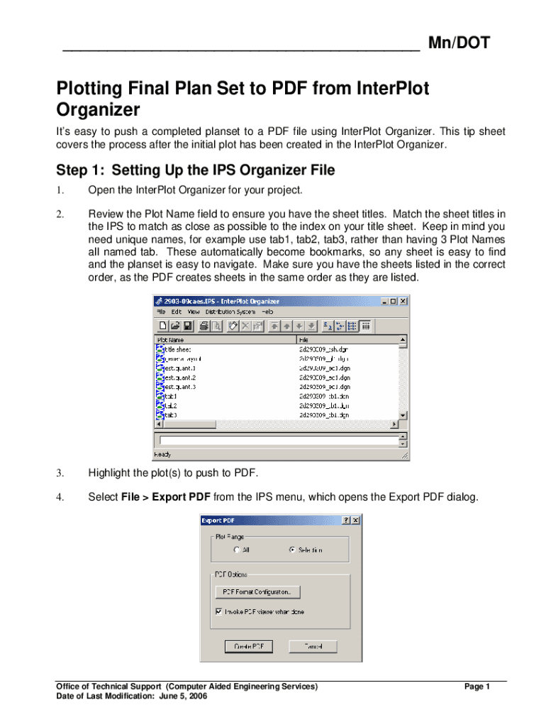 ___ Mn/Plotting Final Plan Set to PDF from Interpret Organizer Its easy to push a completed planet to a PDF file using Interpret Organizer. This tip sheet covers the process after the initial plot