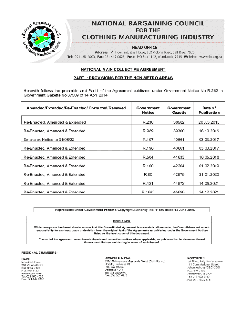 Get the free nbc.org.zawp-contentuploadsNATIONAL MAIN COLLECTIVE AGREEMENT PART I: PROVISIONS FOR...