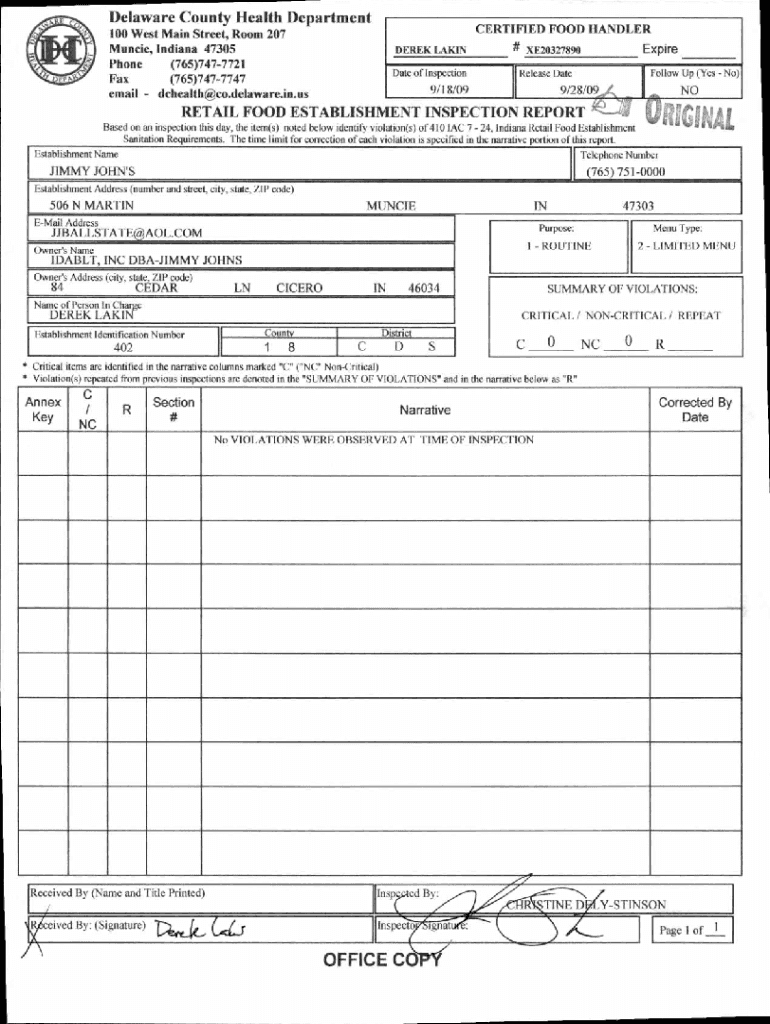 Delaware County Health DepartmentCERTIFIED FOOD HANDLER100 West Main Street, Room 207 Muncie, Indiana 47305 Phone(765)7477721 Fax(765)7477747 email dchealth@co.delaware.in.usDEREK LATIN# XE20327890Date