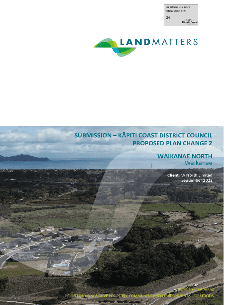 24SUBMISSION SPITE COAST DISTRICT COUNCIL PROPOSED PLAN CHANGE 2 WAKKANAI NORTH Wakkanai Client: W North Limited September 2022Proposed Plan Change 2 Submission W North LimitedSUBMISSION ON BEHALF
