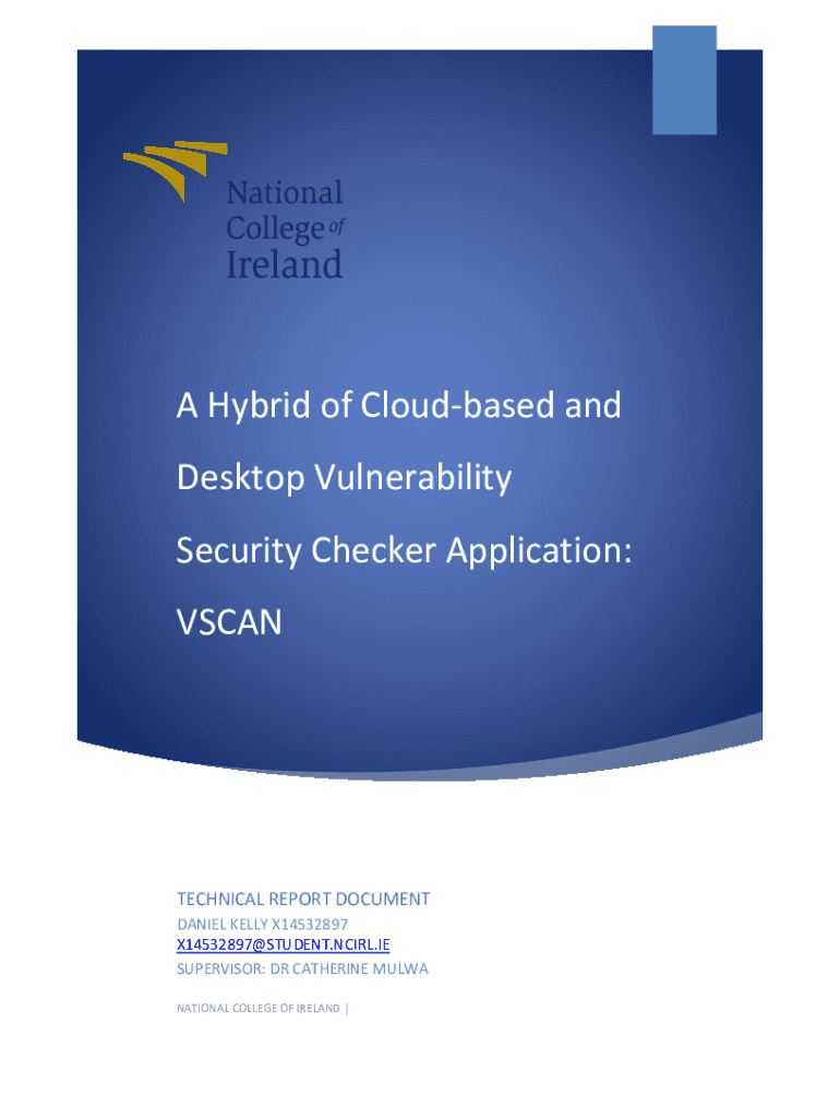 A Hybrid of Cloud based and Desktop VulnerabilitySecurity Checker Application: VSCANTECHNICAL REPORT DOCUMENT DANIEL KELLY X14532897 X14532897@STUDENT.NCIRL.IE SUPERVISOR: DR CATHERINE MULTI NATIONAL