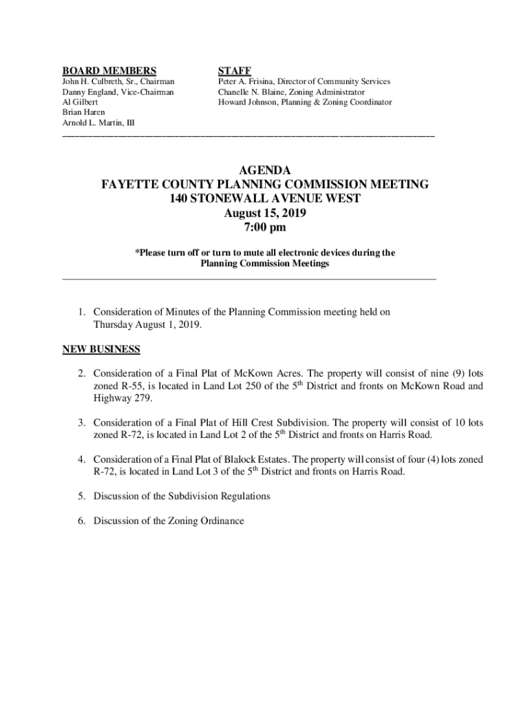 BOARD MEMBERSSTAFFJohn H. Culprit, Sr., Chairman Peter A. Frisian, Director of Community Services Danny England, ViceChairman Chantelle N. Blaine, Zoning Administrator Al Gilbert Howard Johnson, Planning