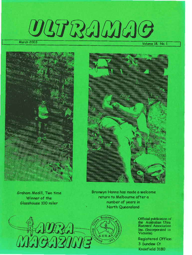 March 2003Graham Medial, Two time Winner of the Glasshouse 100 multivolume 18. No. 1Bronwyn Hands has made a welcome return to Melbourne after a number of years in North Queensland Official publication
