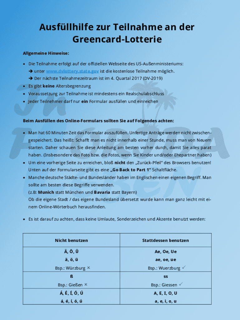 How to fill out bwirdeus-greencard-lotterie-teilnahme-in-10minin 10 minuten kostenlos