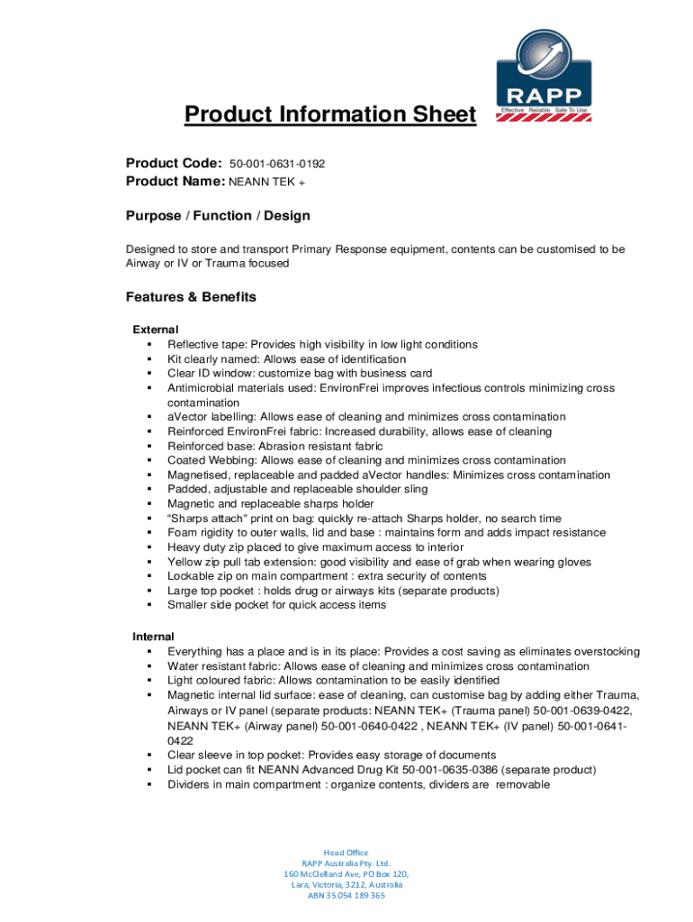 Product Information Sheet Neann is not the form you're looking for?Search for another form here.