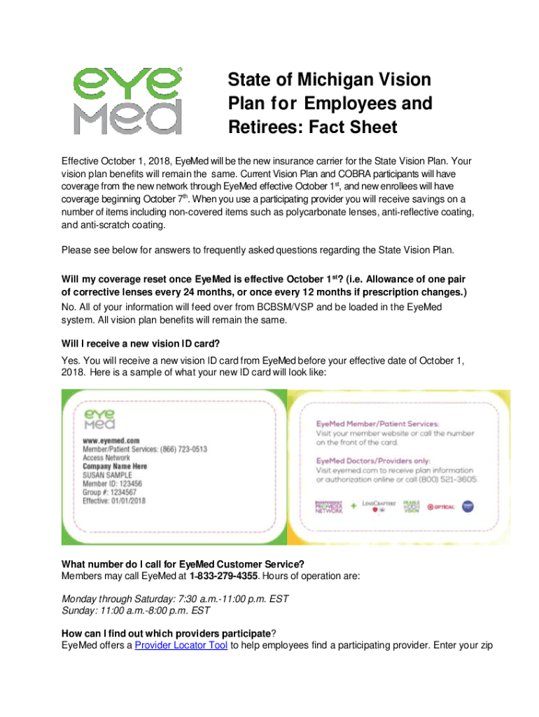 Get the free State of Michigan Vision Plan for Employees and Retirees: Fact Sheet