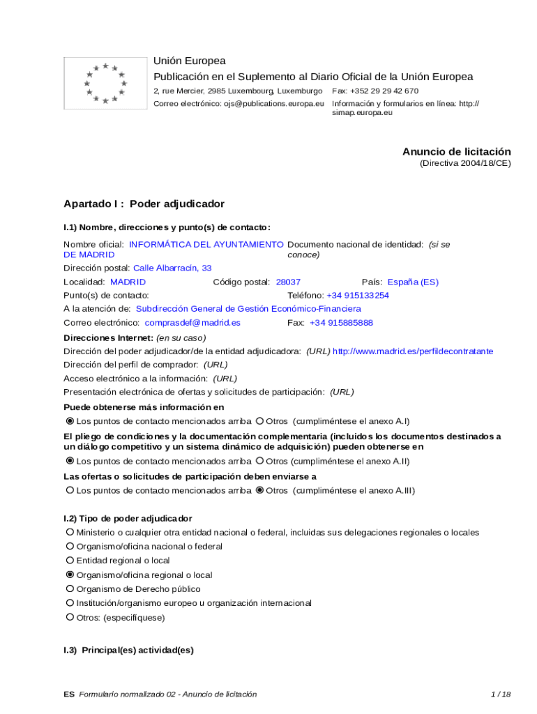 Get the free Anuncio de licitacin - SERVICIOS POSTALES PARA EL AYUNTAMIENTO DE MADRID Y SUS ORGAN...