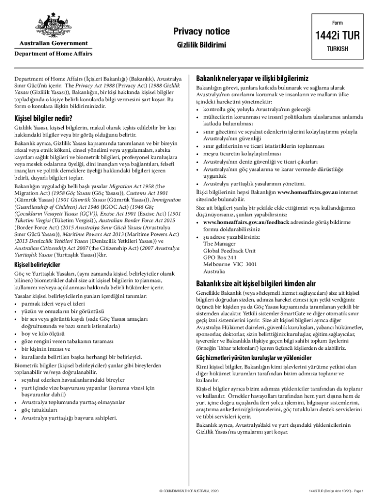 FormPrivacy notice1442i TURGizlilik BildirimiTURKISHDepartment of Home AffairsDepartment of Home Affairs (clerk Banana) (Bank), Australia SNR Gun airier. The Privacy Act 1988 (Privacy Act) (1988 Gillie