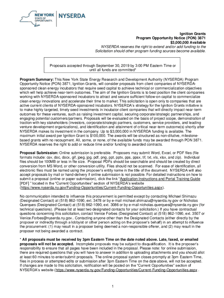 Ignition Grants Program Opportunity Notice (PON) $38713,000,000 Available NYSE RDA reserves the right to extend and/or add funding to the Solicitation should other program funding sources become available.
