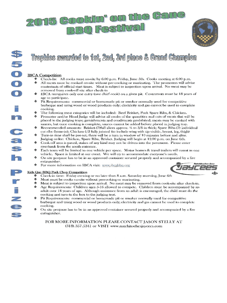 $ 5ooo NCA short e YMCA Competition It's Checking: All cooks must onsite by 6:00 p.m. Friday, we 5th. Cooks meeting at 6:00 p.m. It All meats must be cooked onsite without precooking or marinating.