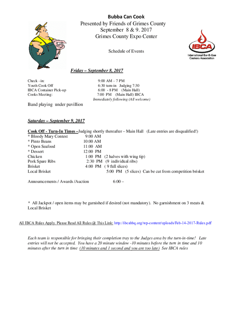 Get the free Bubba Can Cook Presented by Friends of Grimes County September 8 & 9 ...