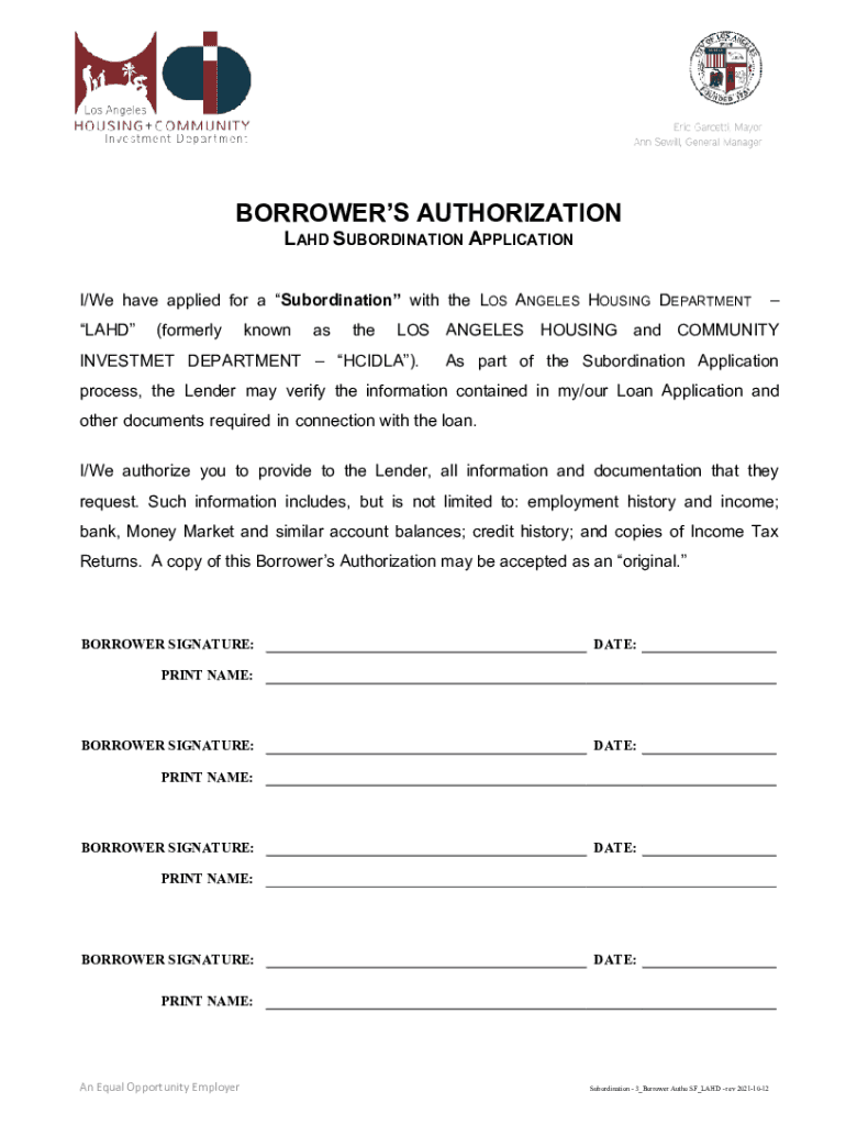 The borrower must complete the LAHD subordination request form and provide all requested documentation.