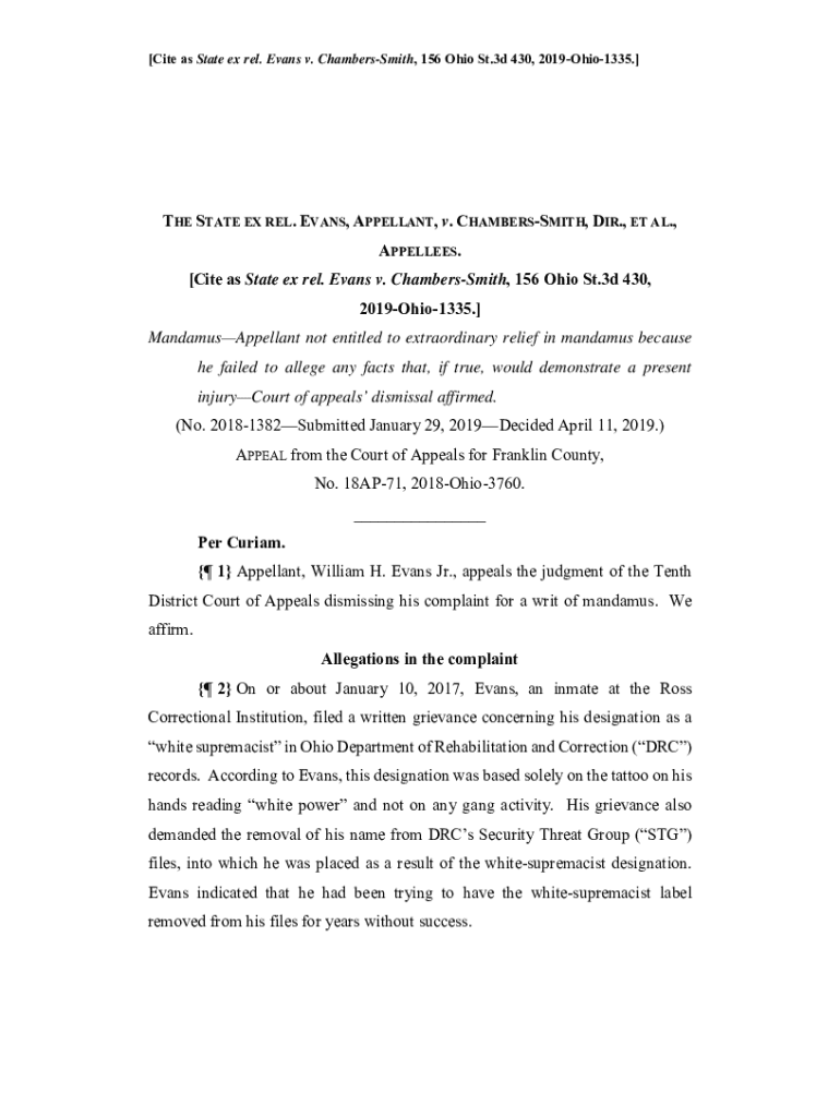 Get the free State ex rel. Evans v. Chambers-Smith, 156 Ohio St. 3d 430Casetext ...