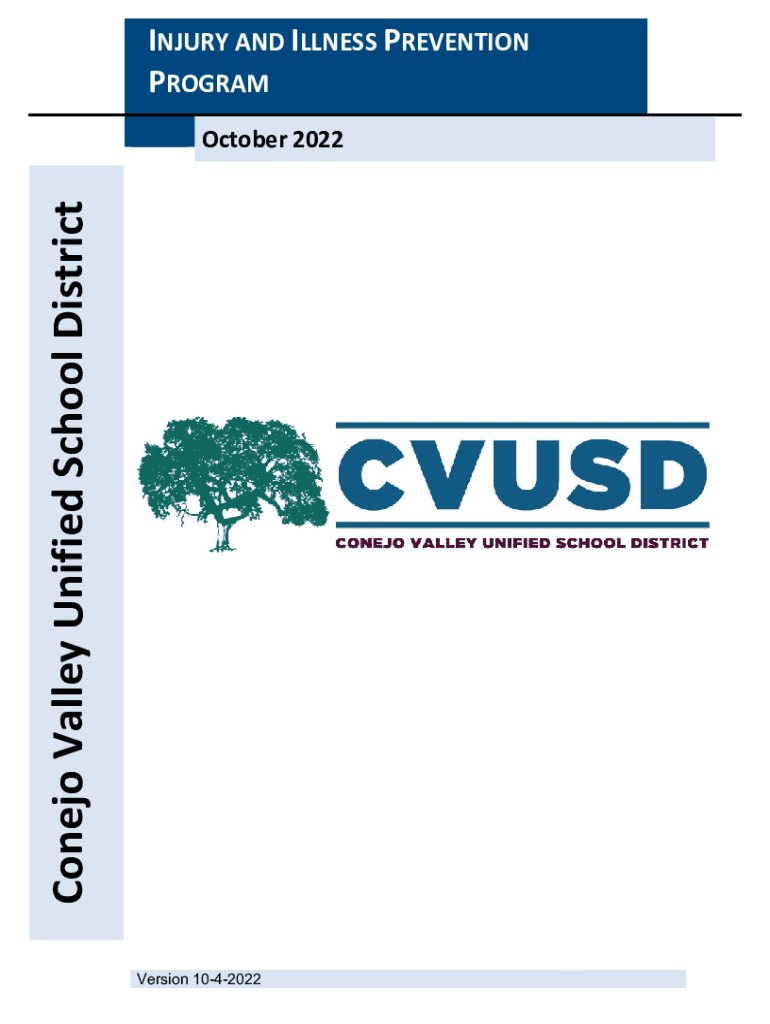 INJURY AND ILLNESS PREVENTION PROGRAMConejo Valley Unified School District October 2022Version 1042022Table of Contents Injury and Illness Prevention Program (IPP).........................................................................................