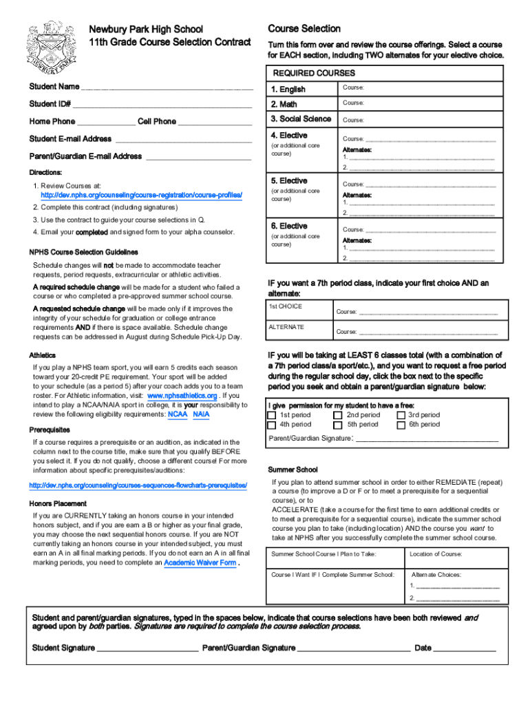 Get the free Newbury Park High School 11th Grade Course Selection ...