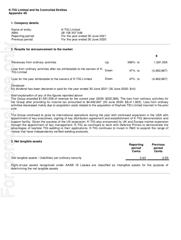 KDIG Limited and Its Controlled Entities Appendix 4E1. Company details personal use online of entity: ABN: Reporting period: Previous period:KDIG Limited 28 158 307 549 For the year ended 30 June