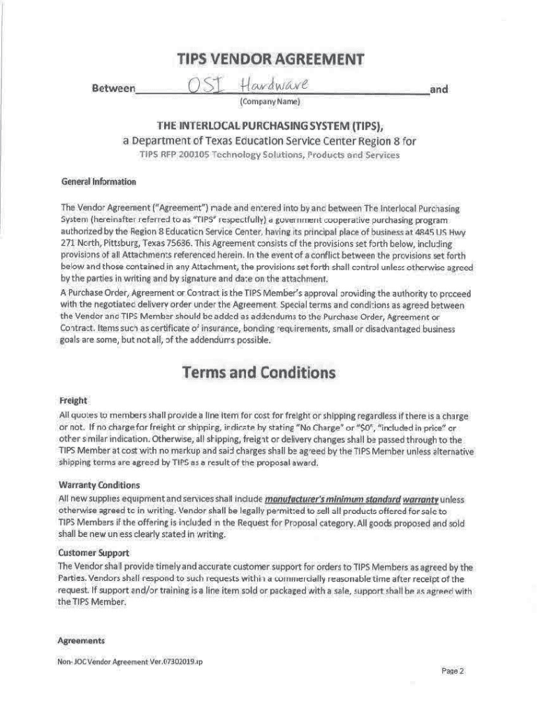Meredith Barton Chief Operating Officer5/5/2020NOTICE TO MEMBERS REGARDING ATTRIBUTE RESPONSES TIPS VENDORS RESPOND TO ATTRIBUTE QUESTIONS AS PART OF TIPS COMPETITIVE SOLICITATION PROCESS. THE VENDORS