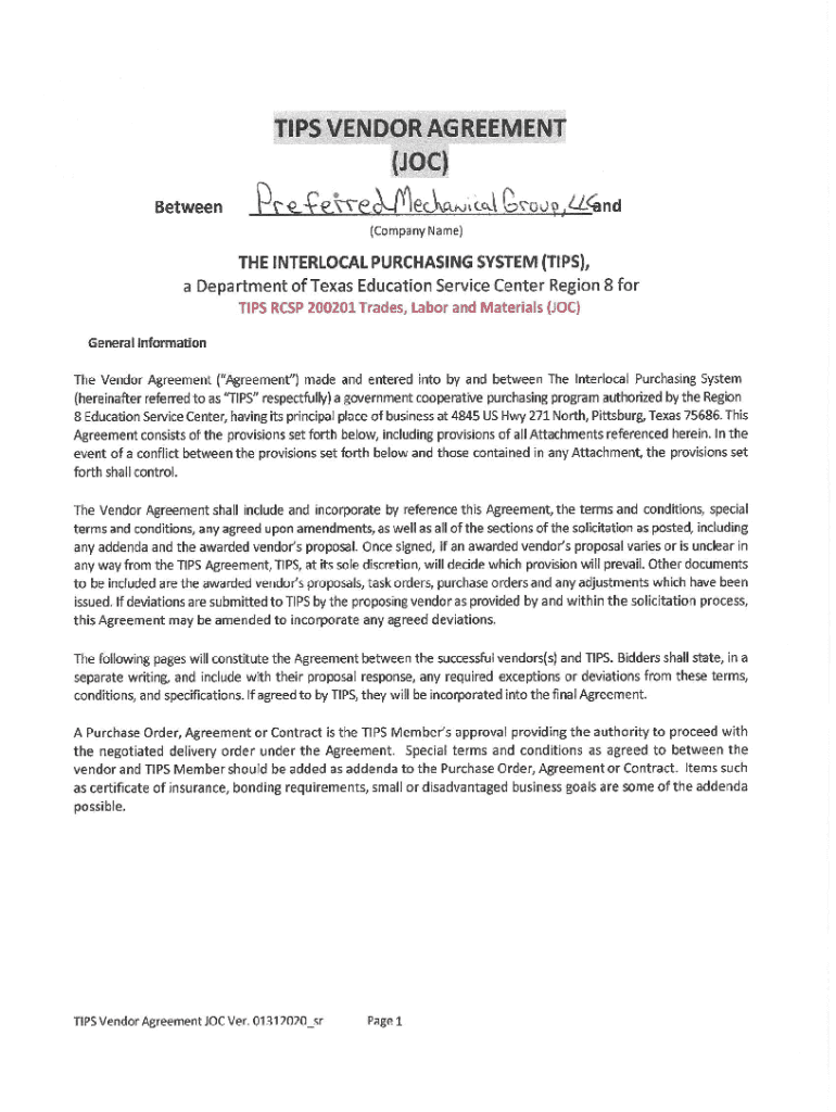Get the free BUILD 200201 Trades Labor Materials JOC Contract Preferred Mechanical Group