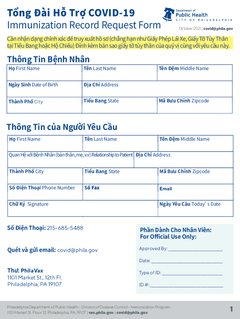 TNG i H Try COVID-19 Immunization Record Request Form October 2021 | covid@phila.govCn NHN dog CNH BC true but h s (Chang in NH Guy PHP Li Xe, Guy T Ty The ti Tie Bang hoc H Chip) NH km in SAO guy