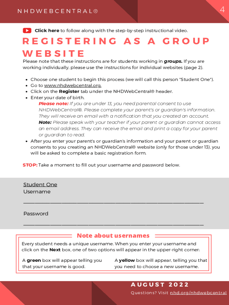 4NHDWEBCENTRAL Click here to follow along with the stepsister instructional video. REGISTERING AS A GROUP WEBSITE Please note that these instructions are for students working in groups. If you are