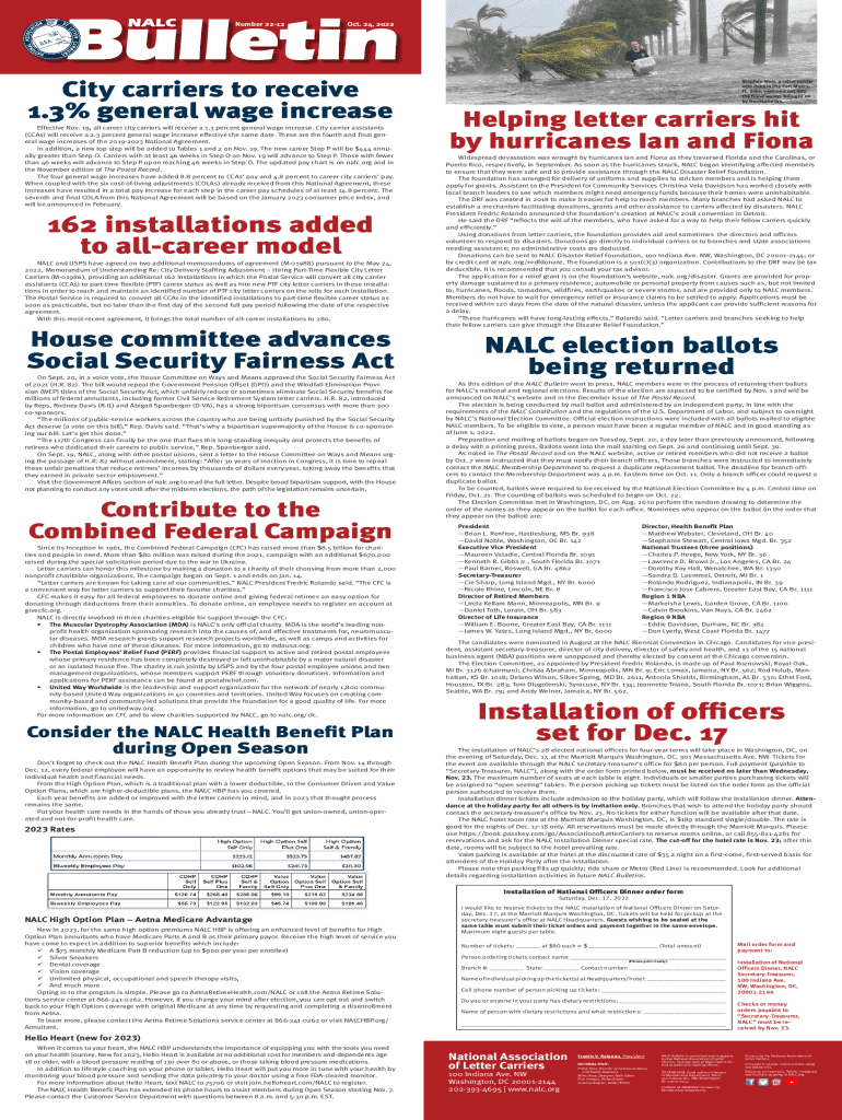 Bulletin NALCNumber 2212Oct. 24, 2022City carriers to receive 1.3% general wage increase Effective Nov. 19, all career city carriers will receive a 1.3 percent general wage increase. City carrier