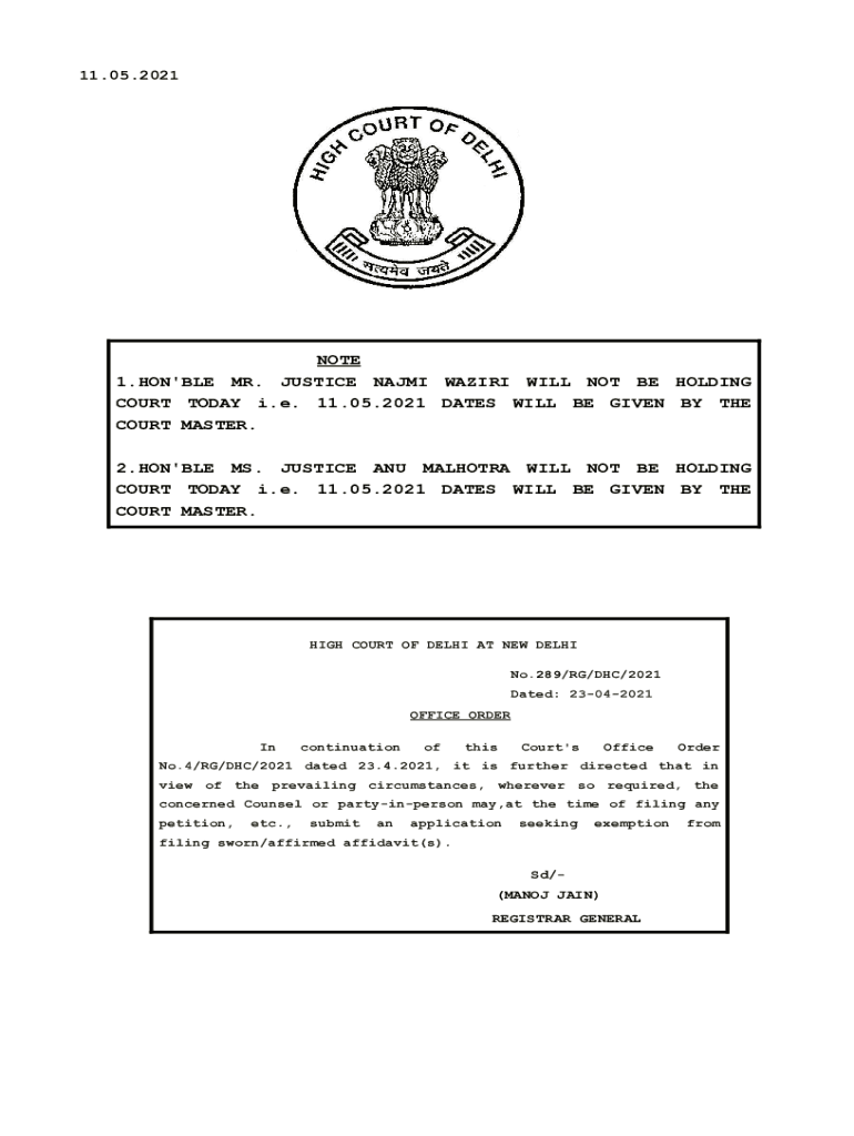 Get the free NOTE 1. HON'BLE MR. JUSTICE NAJMI WAZIRI WILL NOT BE HOLDING COURT ... - delhihighco...