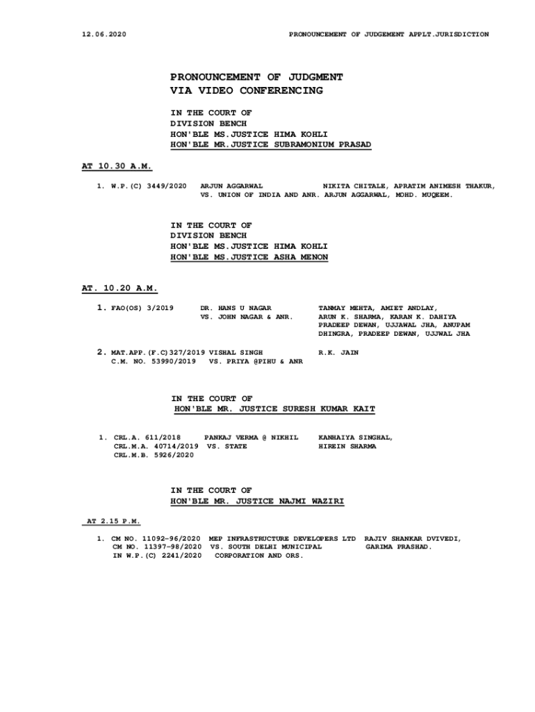 Get the free Pronouncement of Judgment Law and Legal Definition - delhihighcourt nic