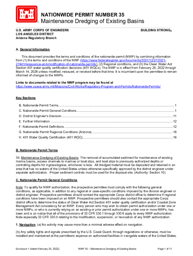 Get the free Nationwide Permit 35 Maintenance Dredging of Existing Basins GENERAL ...
