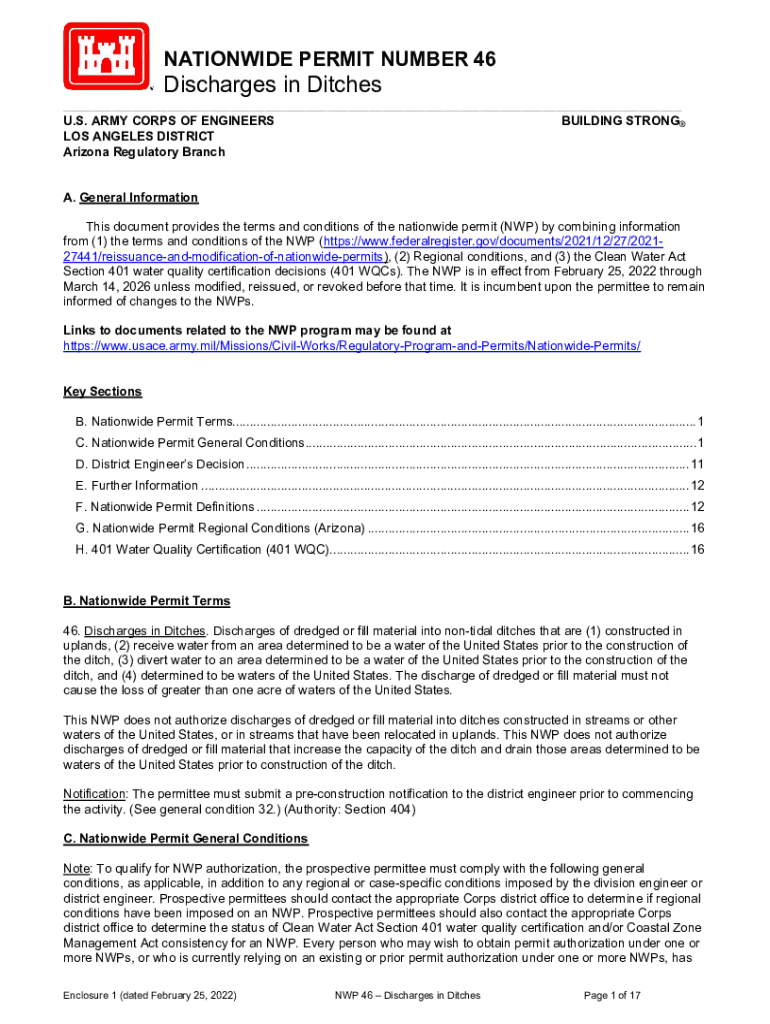 Get the free Nationwide Permit 46 Discharges in Ditches - United States Army