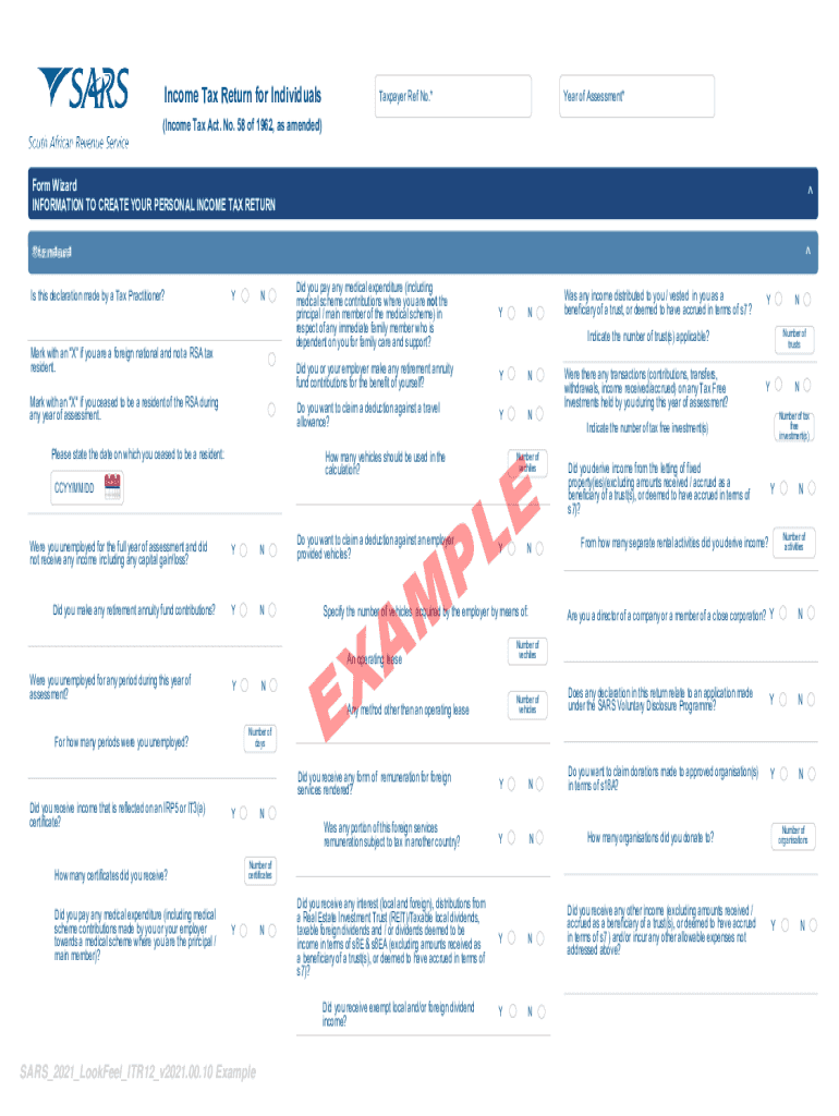 Income Tax Return for IndividualsTaxpayer Ref No.×Year of Assessment*(Income Tax Act. No. 58 of 1962, as amended) Form Wizard INFORMATION TO CREATE YOUR PERSONAL INCOME TAX RETURN^Standard^Is this