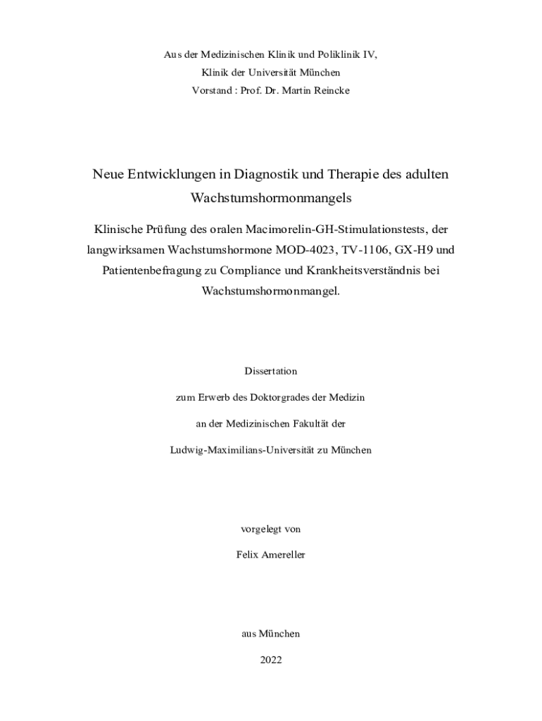 Au's her Medizinischen Link UND Polyclinic IV, Link her University Inches Rostand : Prof. Dr. Martin ReinckeNeue Entwicklungen in Diagnostic UND Therapies DES adulten Wachstumshormonmangels Klinische